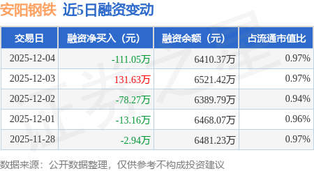 证券之星消息,12月4日,安阳钢铁(600569)融资买入247.33万元,融资偿还358.38万元,融资净卖出111.05万元,融资余额6410.37万元。