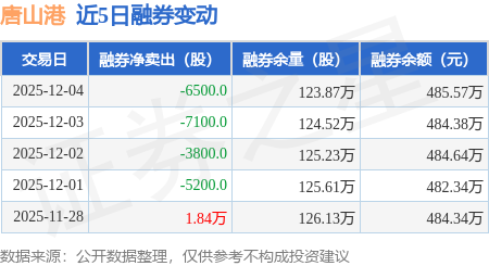 证券之星消息,12月4日,唐山港(601000)融资买入612.52万元,融资偿还866.18万元,融资净卖出253.66万元,融资余额1.35亿元。