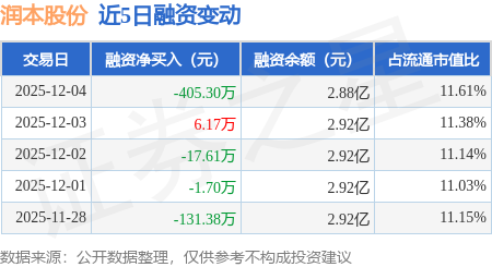 证券之星消息,12月4日,润本股份(603193)融资买入601.95万元,融资偿还1007.24万元,融资净卖出405.3万元,融资余额2.88亿元。