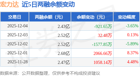 证券之星消息,12月4日,宏力达(688330)融资买入4207.18万元,融资偿还5129.22万元,融资净卖出922.04万元,融资余额2.43亿元,近20个交易日中有11个交易日出现融资净买入。