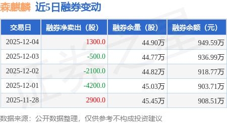 证券之星消息,12月4日,森麒麟(002984)融资买入1310.62万元,融资偿还2446.57万元,融资净卖出1135.95万元,融资余额5.51亿元。
