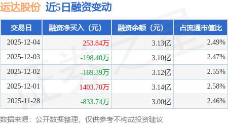 证券之星消息,12月4日,运达股份(300772)融资买入1484.7万元,融资偿还1230.87万元,融资净买入253.84万元,融资余额3.13亿元。