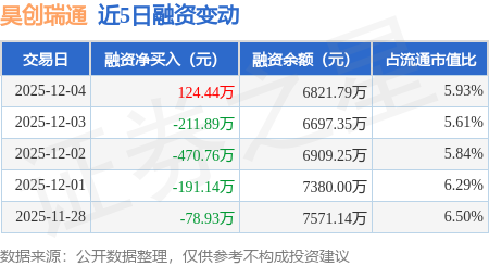 证券之星消息,12月4日,昊创瑞通(301668)融资买入720.45万元,融资偿还596.01万元,融资净买入124.44万元,融资余额6821.79万元。
