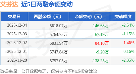 证券之星消息,12月4日,艾芬达(301575)融资买入153.77万元,融资偿还300.45万元,融资净卖出146.68万元,融资余额5618.07万元。