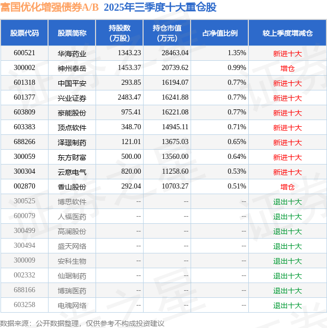 根据2025基金Q3季报公募基金重仓股数据,重仓该股的公募基金共13家,其中持有数量最多的公募基金为富国基金的富国优化增强债券A/B。富国优化增强债券A/B目前规模为49.41亿元,最新净值2.047(12月4日),较上一交易日下跌0.1%,近一年上涨17.58%。该公募基金现任基金经理为张育浩。张育浩在任的基金产品包括:富国悦享回报12个月持有期混合A,管理时间为2021年12月30日至今,期间收益率为15.02%;富国稳健双盈债券发起式A,管理时间为2022年12月21日至今,期间收益率为7.98%;富国双利增强债券A,管理时间为2025年2月26日至今,期间收益率为6.92%;富国稳健添利债券A,管理时间为2025年11月4日至今,期间收益率为-1.06%。