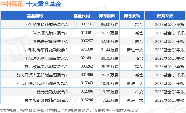 根据2025基金Q3季报公募基金重仓股数据,重仓该股的公募基金共16家,其中持有数量最多的公募基金为民生加银基金的民生加银持续成长混合A。民生加银持续成长混合A目前规模为13.94亿元,最新净值1.8792(12月4日),较上一交易日上涨2.77%,近一年上涨31.9%。该公募基金现任基金经理为范明月。范明月在任的基金产品包括:民生加银科技创新混合(LOF),管理时间为2025年1月20日至今,期间收益率为24.74%;民生加银前沿科技灵活配置混合,管理时间为2025年3月26日至今,期间收益率为8.68%;