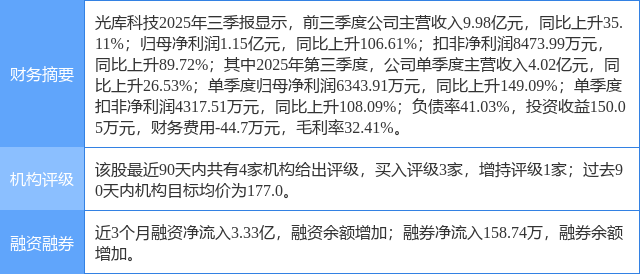 今日光库科技(300620)涨6.51%,收盘报145.72元。