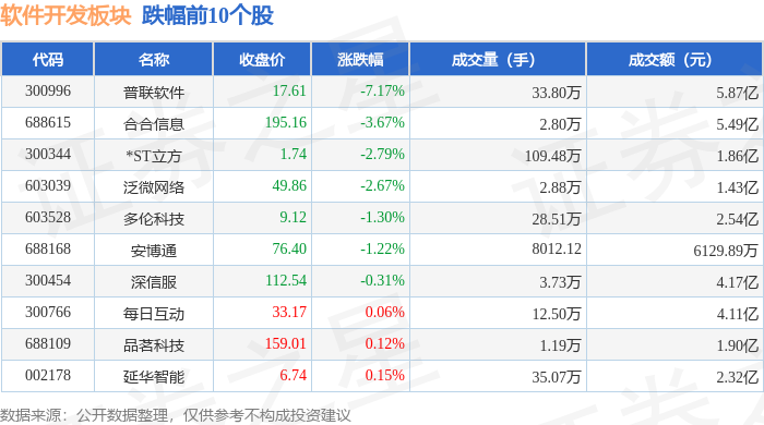 证券之星消息,12月5日软件开发板块较上一交易日下跌0.61%,普联软件领跌。当日上证指数报收于3902.81,上涨0.7%。深证成指报收于13147.68,上涨1.08%。软件开发板块个股涨跌见下表:
