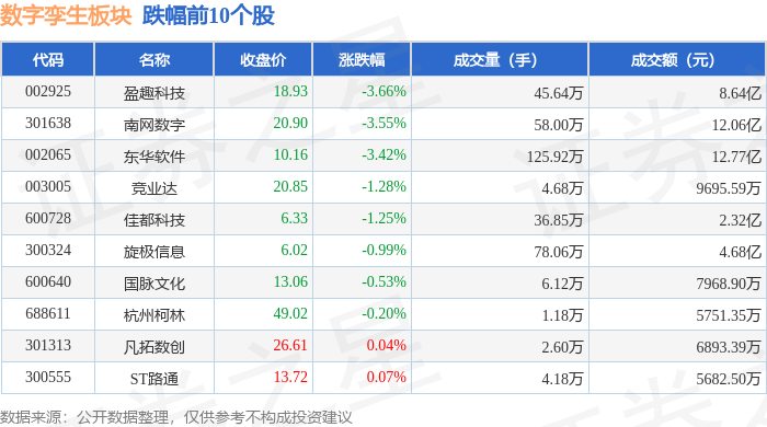 证券之星消息,12月5日数字孪生板块较上一交易日下跌1.09%,盈趣科技领跌。当日上证指数报收于3902.81,上涨0.7%。深证成指报收于13147.68,上涨1.08%。数字孪生板块个股涨跌见下表: