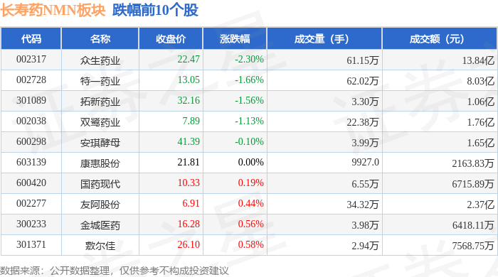 从资金流向上来看,当日长寿药NMN板块主力资金净流出3.02亿元,游资资金净流出5743.03万元,散户资金净流入3.6亿元。长寿药NMN板块个股资金流向见下表:
