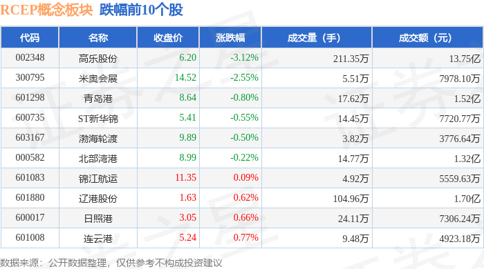 从资金流向上来看,当日RCEP概念板块主力资金净流出1.67亿元,游资资金净流入7425.83万元,散户资金净流入9237.39万元。RCEP概念板块个股资金流向见下表: