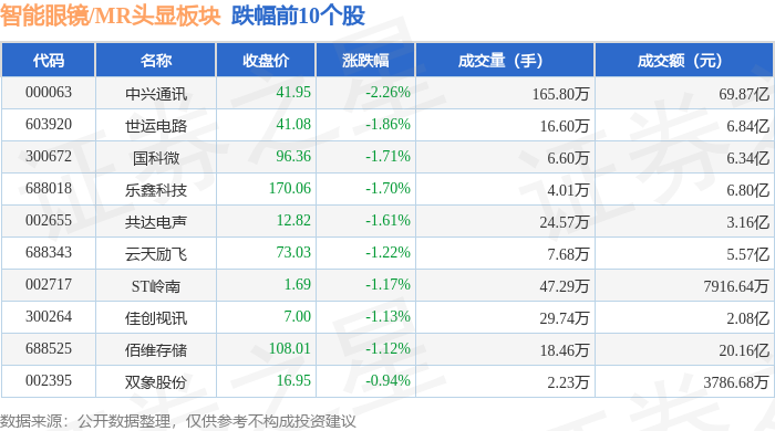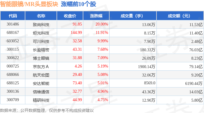 从资金流向上来看,当日智能眼镜/MR头显板块主力资金净流入4.84亿元,游资资金净流出10.33亿元,散户资金净流入5.49亿元。智能眼镜/MR头显板块个股资金流向见下表: