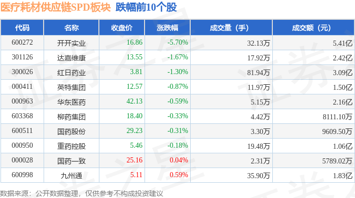 从资金流向上来看,当日医疗耗材供应链SPD板块主力资金净流入3.95亿元,游资资金净流出2.62亿元,散户资金净流出1.33亿元。医疗耗材供应链SPD板块个股资金流向见下表: