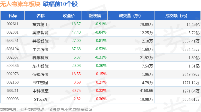 从资金流向上来看,当日无人物流车板块主力资金净流出1.84亿元,游资资金净流出4213.69万元,散户资金净流入2.26亿元。无人物流车板块个股资金流向见下表: