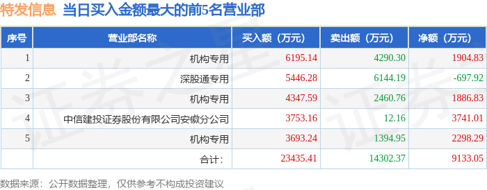 证券小知识:龙虎榜是交易所披露的竞价交易公开信息,现身龙虎榜的个股都是当日最为活跃的个股,是投资者日常重点关注的数据。交易所公布当日买入金额和卖出金额前五名的席位,其中一些席位代表特殊意义,如机构专用席位是指基金专用席位、券商自营专用席位、社保专用席位、券商理财专用席位、保险机构专用席位、保险机构租用席位、QFII专用席位等机构投资者买卖证券的专用通道和席位。深股通专用、沪股通专用为北向资金的交易席位。从龙虎榜数据可以发现和研究机构、游资和散户的资金动向。一些营业部席位经常上榜,市场知名度较高,投资者整理代表散户、游资、量化等不同资金的营业部席位。