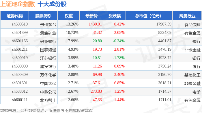 证券之星消息,12月5日,上证地企(000055)指数报收于1545.26点,涨1.06%,成交633.45亿元,换手率0.93%。当日该指数成份股中,上涨的有34家,中国太保以6.85%的涨幅领涨,下跌的有16家,江苏银行以1.78%的跌幅领跌。