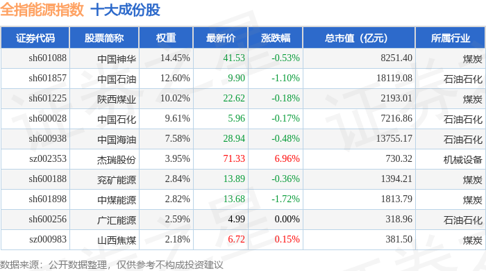 资金流向方面,全指能源(000986)指数成份股当日主力资金净流出合计3.02亿元,游资资金净流出合计1650.31万元,散户资金净流入合计3.18亿元。成份股资金流向详情见下表: