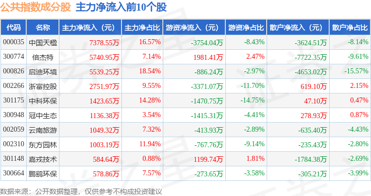 资金流向方面,公共指数(399244)成份股当日主力资金净流出合计5844.44万元,游资资金净流出合计7611.82万元,散户资金净流入合计1.35亿元。成份股资金流向详情见下表: