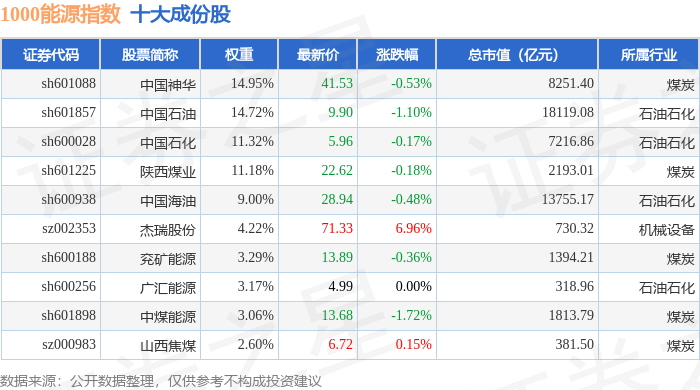 资金流向方面,1000能源(399381)指数成份股当日主力资金净流出合计2.67亿元,游资资金净流出合计635.75万元,散户资金净流入合计2.74亿元。成份股资金流向详情见下表: