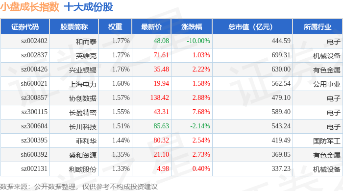 证券之星消息,12月5日,小盘成长(399376)指数报收于5990.04点,涨1.14%,成交933.42亿元,换手率1.98%。当日该指数成份股中,上涨的有128家,金力永磁以8.07%的涨幅领涨,下跌的有38家,和而泰以10.0%的跌幅领跌。