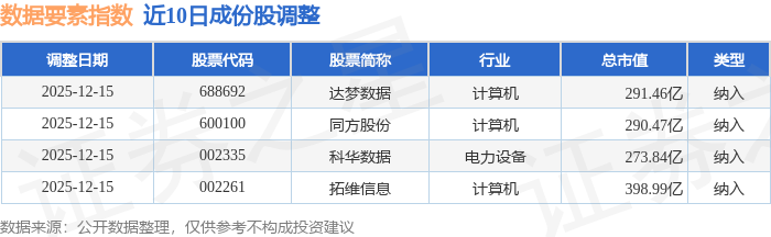 近10日内数据要素(399418)指数成份股做了调整,新纳入了4只股票。