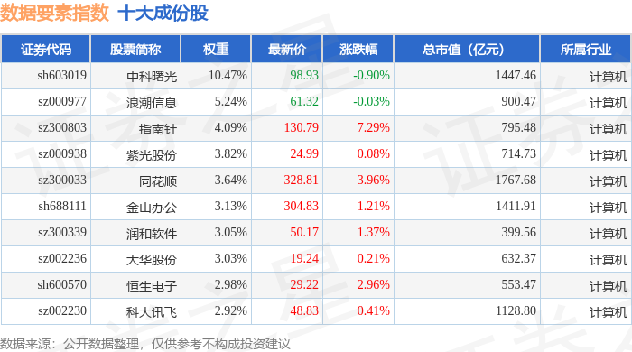 数据要素(399418)指数十大成份股详情如下: