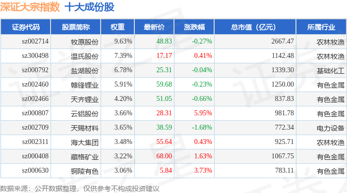资金流向方面,深证大宗(399639)指数成份股当日主力资金净流入合计4796.86万元,游资资金净流出合计2.81亿元,散户资金净流入合计2.33亿元。成份股资金流向详情见下表: