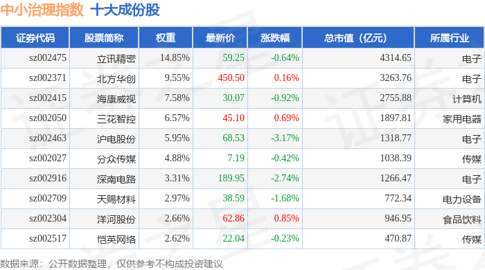 中小治理(399650)指数十大成份股详情如下: