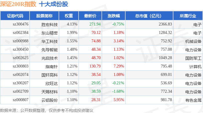 深证200R(399679)指数十大成份股详情如下:
