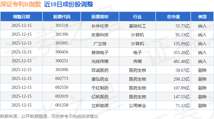近10日内深证专利R(470067)指数成份股做了调整,新纳入了5只股票,剔除了5只股票。