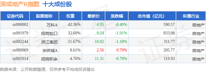 深成地产R(471001)指数十大成份股详情如下:
