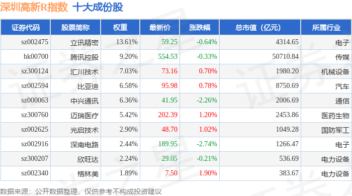 近10日内深圳高新R(480038)指数成份股做了调整,新纳入了1只股票。