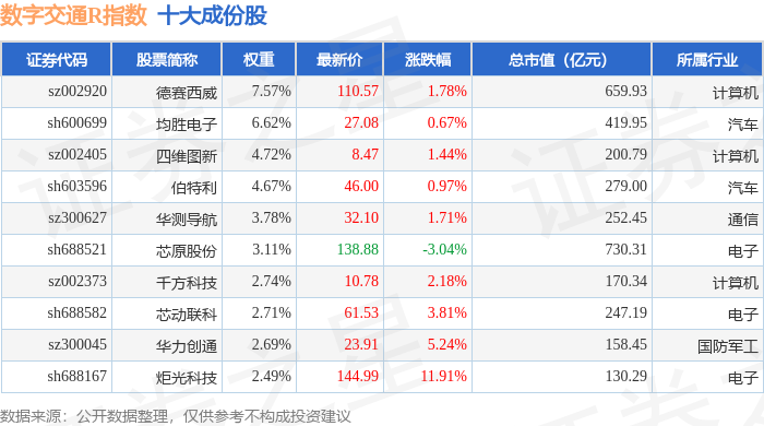 近10日内数字交通R(480075)指数成份股做了调整,新纳入了1只股票。