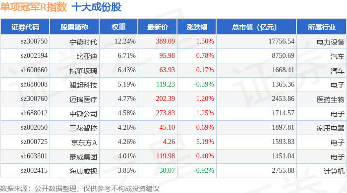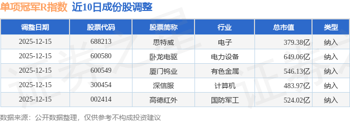 近10日内单项冠军R(480150)指数成份股做了调整,新纳入了5只股票。