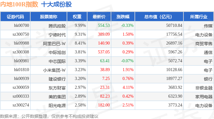 近10日内内地100R(483001)指数成份股做了调整,新纳入了4只股票。
