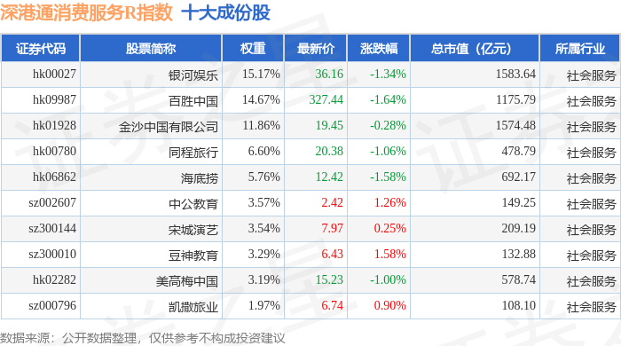深港通消费服务R(483045)指数十大成份股详情如下: