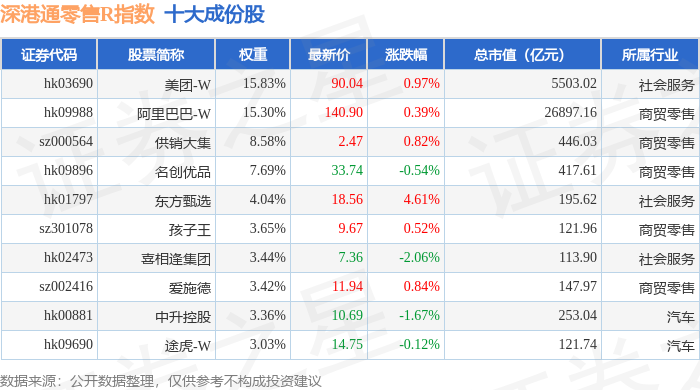 资金流向方面,深港通零售R(483073)指数成份股当日主力资金净流入合计968.85万元,游资资金净流出合计7187.87万元,散户资金净流入合计6219.02万元。成份股资金流向详情见下表: