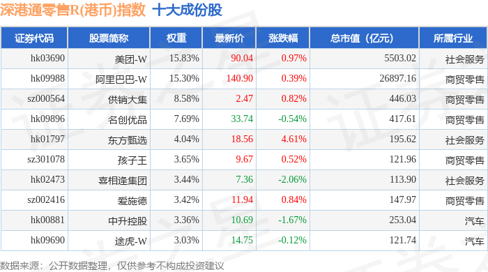 深港通零售R(港币)(483074)指数十大成份股详情如下: