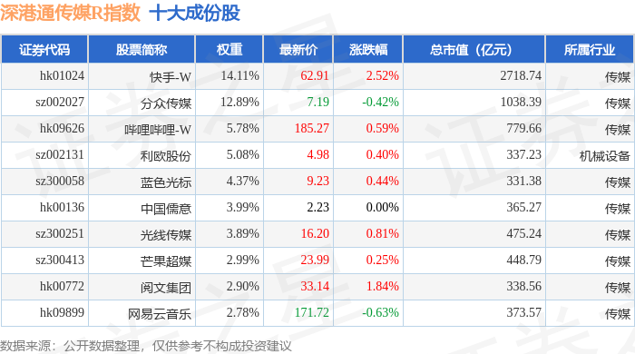 资金流向方面,深港通传媒R(483075)指数成份股当日主力资金净流出合计4.29亿元,游资资金净流出合计8768.94万元,散户资金净流入合计5.16亿元。成份股资金流向详情见下表: