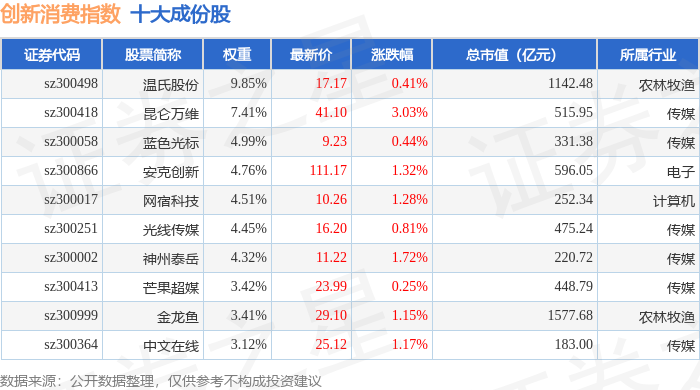 近10日内创新消费(970041)指数成份股做了调整,新纳入了3只股票,剔除了3只股票。