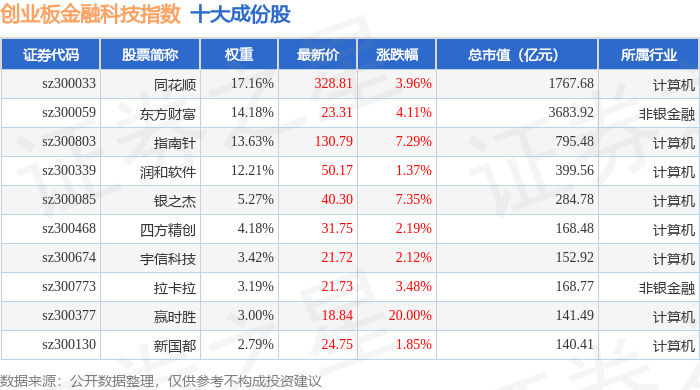 近10日内创业板金融科技(970085)指数成份股做了调整,新纳入了5只股票。