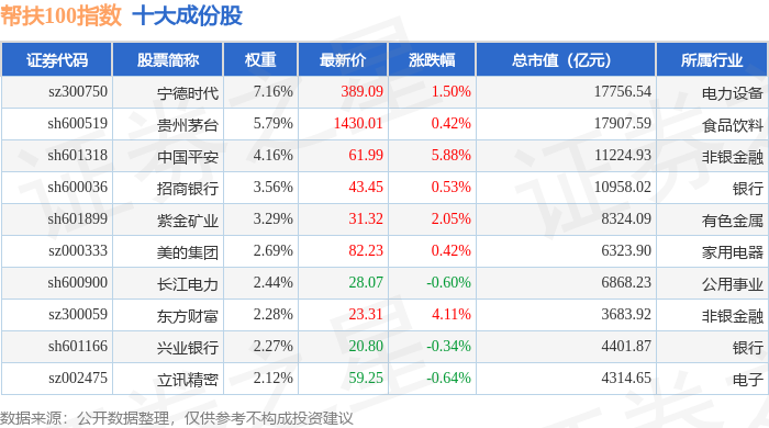 近10日内帮扶100(980065)指数成份股做了调整,新纳入了5只股票。
