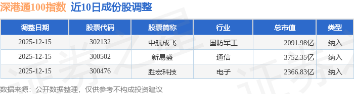 近10日内深港通100(983007)指数成份股做了调整,新纳入了3只股票。