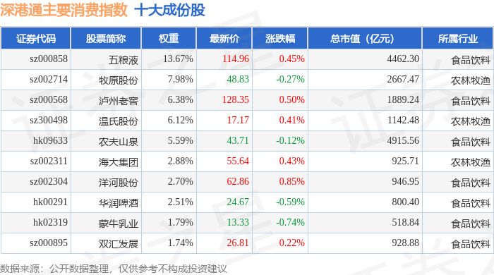 资金流向方面,深港通主要消费(983021)指数成份股当日主力资金净流出合计2.76亿元,游资资金净流出合计894.83万元,散户资金净流入合计2.85亿元。成份股资金流向详情见下表: