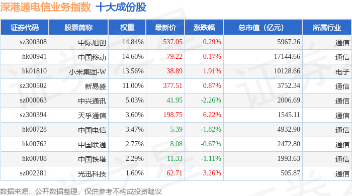 证券之星消息,12月5日,深港通电信业务(983029)指数报收于10293.64点,涨1.27%,成交1066.29亿元,换手率1.79%。当日该指数成份股中,上涨的有61家,致尚科技以20.0%的涨幅领涨,下跌的有13家,菲菱科思以8.2%的跌幅领跌。