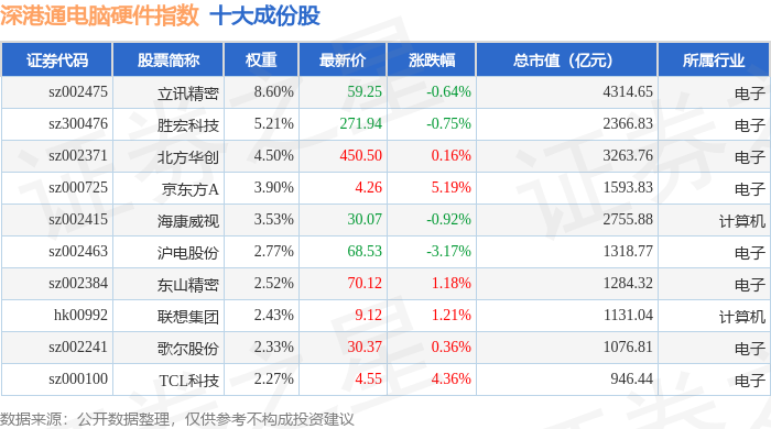 深港通电脑硬件(983043)指数十大成份股详情如下: