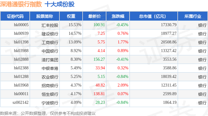 证券之星消息,12月5日,深港通银行(983081)指数报收于7617.04点,涨0.26%,成交91.45亿元,换手率0.2%。当日该指数成份股中,上涨的有10家,招商银行以2.09%的涨幅领涨,下跌的有16家,青岛银行以2.06%的跌幅领跌。