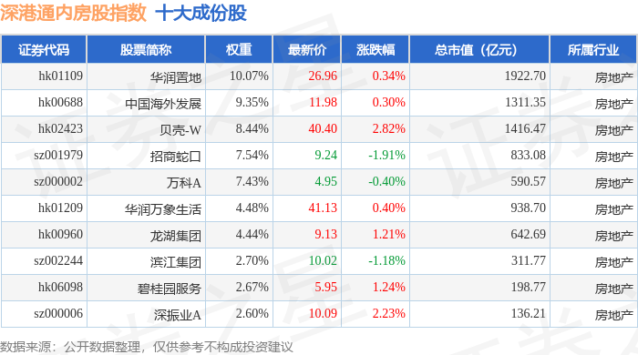 深港通内房股(983083)指数十大成份股详情如下: