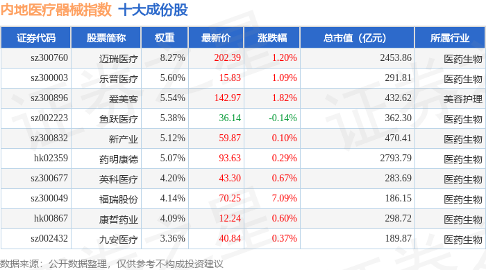 近10日内内地医疗器械(983103)指数成份股做了调整,新纳入了1只股票。