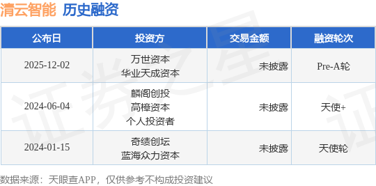 证券之星消息,根据天眼查APP于12月2日公布的信息整理,清云智能(深圳)有限公司Pre-A轮融资,融资额未披露,参与投资的机构包括万世资本,华业天成资本。